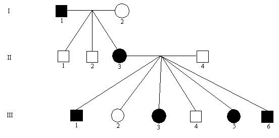 1 Nedenfor er angivet en stamtavle, der viser den autosomale defekt ataksi (aa) hos hunde i et kuld efter normale (A-), men beslægtede forældre III 4 og III 8. Da denne defekt er sjælden, kan det antages, at II 1 og II 6 ikke bærer genet a.a) Giv en liste over de hunde, hvor genotypen kan fastlægges og angiv typen. b) Hvor stor er sandsynligheden for, at det klinisk sunde dyr IV 2 er anlægsbærer? 2 På en klinik for mindre husdyr har man påvist en sjælden enzymdefekt hos en hanhund IV 1. På grundlag af ejerens oplysninger og laboratorie- mæssig undersøgelse af alle nulevende søskende og aner kunne nedenanførte genealogiske diagram konstrueres. Hvilken monofaktoriel arvegang må anses for at være den mest sandsynlige på enzymdefektens forekomst? Mulighederne skal behandles hver for sig. 3 Hos menneske og kanin er der fundet en anomali, som manifesterer sig blandt andet i leukocyternes form. I nedenstående stamtavle er vist forekomsten af "syge" og normale individer. Giv en udførlig motivering for hvilken arvegang, der er mest sandsynlig, og hvilke der sandsynligvis kan udelukkes (monofaktoriel nedarvning antages). 4 Pelsdyravlere har påvist en ny pelskvalitet hos en han, I 1 og har yderligere opnået de resultater, der er anført i det genealogiske diagram. Udfyldt symbol betegner ny pelskvalitet. a) Under antagelse af monofaktoriel nedarvning ønskes en redegørelse for den nyopdukkede egenskabs arvegang. b) Beskriv en avlsmetode, der kan anvendes til verificering af arvegangen. 5 Hos hvilket køn vil man forvente, at en recessiv kønsbunden mutant- egenskab viser sig. a) Hos høns? b) Hos kaniner? 6 En tyr, der er importeret fra Canada, er mistænkt for at være anlægsbærer af en uønsket recessiv egenskab, som er meget sjælden inden for den pågældende race her i landet. a) Skitsér en metode til afprøvning af tyren for det pågældende anlæg. b) Beregn det antal individer, der er nødvendige i undersøgelsen for at kunne udtale sig med 95% sikkerhed. c) Giv en klar formulering af det mulige resultat af undersøgelsen. 7 Man ønsker gennem afkomsprøve at fastlægge, om en tyr er anlægsbærer for et bestemt recessivt gen. Dette kan ske ved at parre tyren med a) Køer af den recessive type (aa) b) Køer, som man ved er heterozygote (Aa) c) Egne døtre Hvis alt afkommet er normalt, hvor mange stk. afkom må tyren give i disse tre forskellige tests, for at sandsynligheden for at den ikke er anlægsbærer er 95%? 8 I det genealogiske diagram repræsenterer I 1 og I 2 en tilfældigt udtaget orne og en tilfældigt udtaget so inden for Dansk Landrace midt i 1980erne, hvor frekvensen af det recessive halotangen n var høj, idet der fødtes 4% halotan-følsomme grise (genotype nn). Samtlige grise i diagrammet blev halotantestet i 6-7 ugers alderen. Testen viste, at III 2 og III 4 var halotanfølsomme. I populationerne som helhed var der tilfældig parring. a) Angiv de individer, der med sikkerhed må være anlægsbærere for halotangenet n, og angiv sandsynligheden for, at henholdsvis III 1, III 3 og III 5 er anlægsbærere. b) Hvad er sandsynligheden for, at I 2 er anlægsbærer, idet resultatet angives på basis af det faktum, at der fødes 4% halotanfølsomme i populationen. c) Idet det antages, at II 2 er anlægsbærer, hvad er da sandsynlig- heden for, at III 6 er genotypisk normal (dvs. genotype Hal NN)? 9 Blandt 120 stk. afkom efter heterozygotiske forældre (parringstype: Aa x Aa) er følgende udspaltningsforhold påvist: Genotype Antal AA 39 Aa 51 aa 30 Undersøg ved hjælp af Chi-i-anden test, om der er statistisk signifikant afvigelse fra den forventede udspaltning. 10 Der foretages en tilbagekrydsning, det vil sige homozygot x heterozygot, for at teste om en karakter nedarves recessivt. Der er i alt 30 tilbage- krydsningsindivider. Undersøg ved hjælp af Chi-i-anden-test for hvilke talforhold hypotesen om recessiv nedarvning kan accepteres (1:1 spaltning), når 5% signifikansgrænsen anvendes. 11 Angiv sandsynligheden for en kønsfordeling på to hanner og fire hunner i et kuld minkhvalpe på seks stk. Kønskvotienten sættes til 50%. 12 Hos kvæg dominerer kullet (uden horn) P- over hornet pp. Hvor stor er sandsynligheden for, at en heterozygotisk ko får én kullet + tre hornede kalve efter inseminering med heterozygotiske tyre? 13 Angiv mulige kombinationer af AA, Aa og aa i familier på tre søskende efter parring mellem heterozygotiske forældre. 14 Afkom efter en fænotypisk normal orne og fire fænotypisk normale søer, som alle fem var kendte bærere af anlæg for krogede baglemmer, viste følgende udspaltningsforhold: Foto, Lars Wichmann Madsen viser nyere billede med tilsvarende symptomer. Normale Afficerede ------------------------------- So nr. 1 6 3 So nr. 2 10 2 So nr. 3 12 3 So nr. 4 5 0 ------------------------------- Undersøg med statistisk test om disse udspaltningsforhold er i overens- stemmelse med en hypotese om recessiv nedarvning. 15 Undersøg om udspaltningen af recessive i nedenstående familiemateriale hos kvæg er i overensstemmelse med en 7:1 spaltning, idet både faderen og morfaderen antages at være anlægsbærere. Familierne er fundet på grundlag af mindst et afficeret afkom. Familie-størrelse Antal afficerede --------------------------------------- 2 1 2 1 2 1 2 1 2 1 3 1 5 1 6 1 6 1 8 2 15 2 ---------------------------------------- 16 Hos grise er der påvist en form for lamhed af forbenene, som forekommer sporadisk i kuld efter normale forældre. I en større besætning blev anomalien påvist hos grise i seks kuld, og fordelingen var følgende: Kuld nr. Normale Afficerede* ----------------------------------- 1 5 3 2 4 3 3 4 1 4 7 3 5 7 3 6 9 2 ----------------------------------- * Ligeligt fordelt mellem orne- og sogrise. Angiv den genetiske hypotese, der svarer bedst til de indsamlede data. Der ønskes en statistisk afprøvning af denne hypotese.